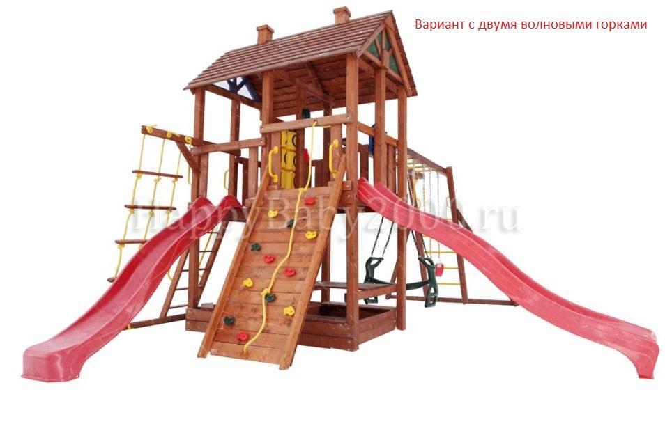 Игровой комплекс "Форт орешек" укомплектован горками: двумя волновыми или волновой и винтовой (сборной или литой).