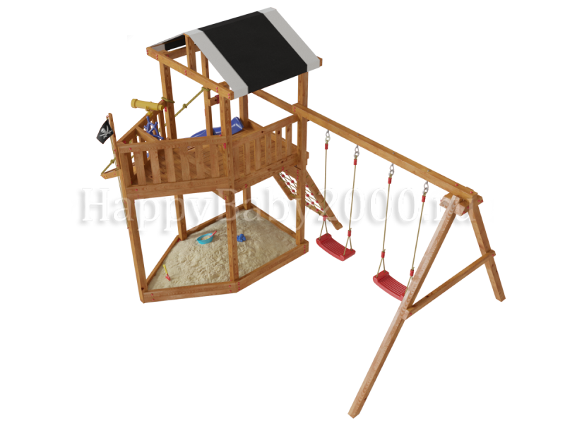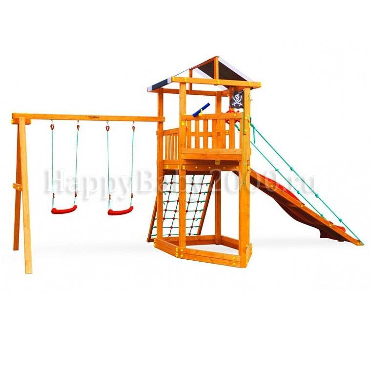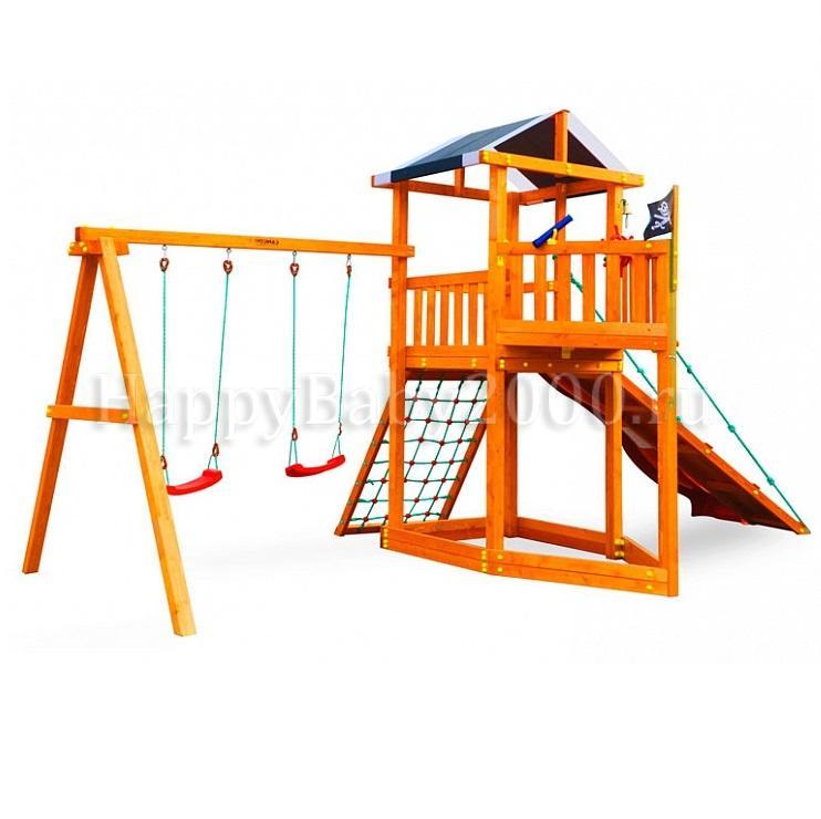 Детская игровая площадка Баунти отличается от предыдущих городков данной серии наличием элемента напоминающего нос корабля. Плюс к этому - имеется трап с двумя канатами. Судя по многочисленным отзывам в базовой комплектации не хватает лестницы с перилами и скалодрома с канатом, но Вы всегда можете заказать этот товар дополнительно (подробности ниже). Купить детский городок Баунти со скидкой можно до окончания данной продукции на складе, т.к. модель в прежнем виде больше не производится.