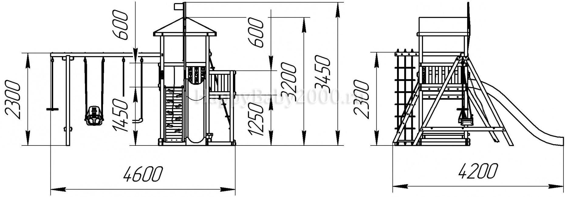 Взаимоположение деталей (лестница, горка, скалодром) - по желанию покупателя.