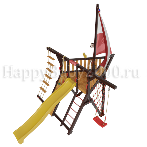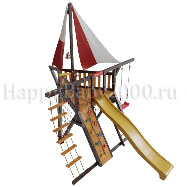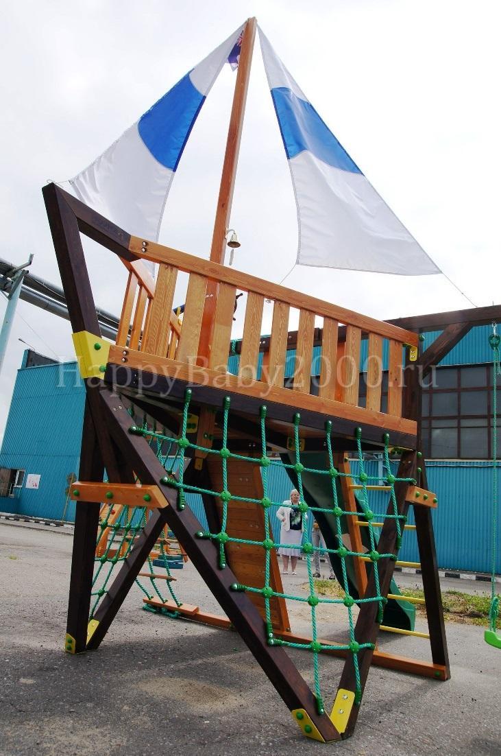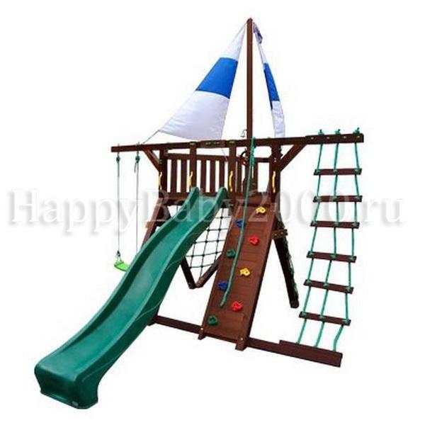 Детский городок Фортуна имеет эксклюзивный дизайн. Данный игровой комплекс имеет два паруса и, в отличии от других площадок Самсон с парусами, укомплектован лестницей (к которой рекомендуется докупить металлические перила). А если у Вас есть маленькие дети - желательно доукомплектовать детский игровой городок Фортуна не только качелями со спинкой, но и лестницей с широкими деревянными ступенями.