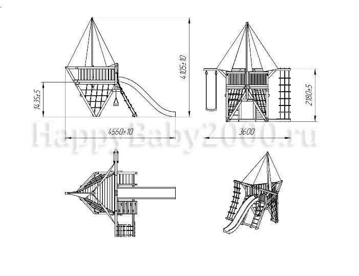 Взаимоположение деталей (спуск, лестница, альпинистская стена, сетка, балка качели и т.д.) - в соответствии с чертежом.