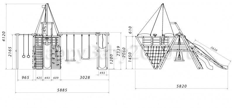 Возможность БЕСПЛАТНО ПОМЕНЯТЬ подвесные элементы (качели со спинкой, вместо качели без спинки и т.д.).