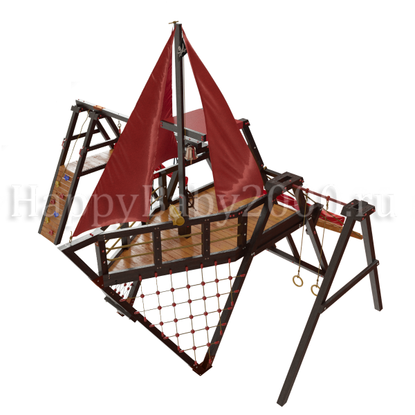 Детский игровой городок Каравелла имеет эксклюзивный дизайн с парусами. В отличии от площадки Фрегат, укомплектован турником с гимнастическими кольцами и второй качели. Правда, нужно отметить, что в отличии от игрового комплекса Фрегат в комплектации Каравеллы нет рукохода, веревочной лестницы. Кроме того в комплектации отсутствует простая лестница с перилами.