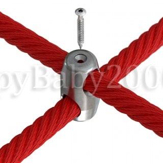 Металлический крестообразный соединитель для канатов диаметром 16 и 20 мм. Канаты пропускаются в отверстия соединителя и фиксируются саморезом. Соединители используются в канатных конструкциях типа «Пирамида», а также в крупных нагруженных сетках. Для более надёжного соединения можно обжать 300-тонным прессом. Максимальная нагрузка на соединение составляет 5 kN.