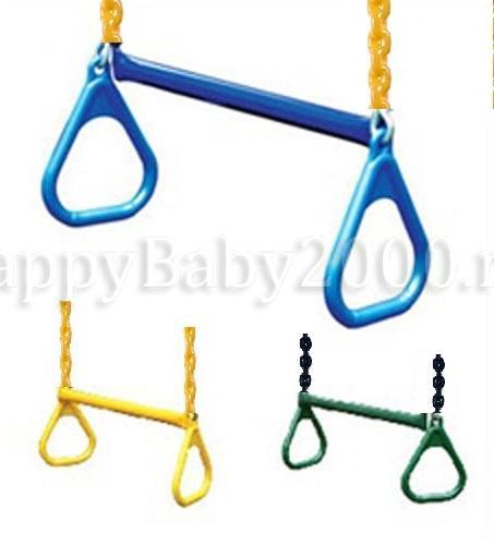 Гимнастические треугольные кольца с металлической трапецией на цепях в полимере