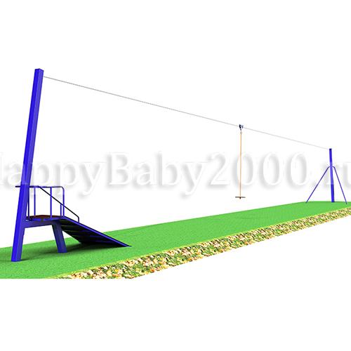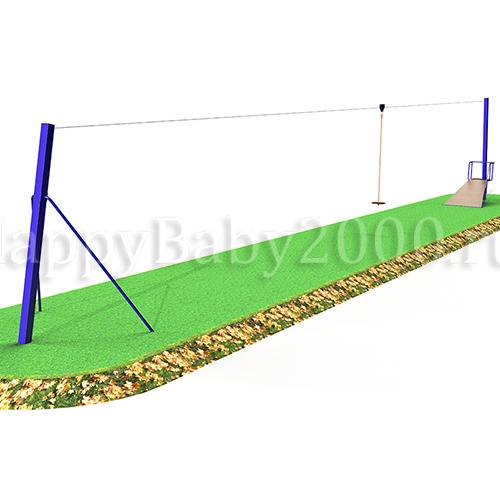 Комплектация: стартовая и финишная опоры, устройство для натяжения троса, трос с крепежом и комплектующими, подвижная каретка-тандем из конструкционной стали с металлическими роликами на подшипниках, сиденье с подвесом, тормозная пружина с резиновым буфером, резиновый буфер стартовой точки крепления троса.