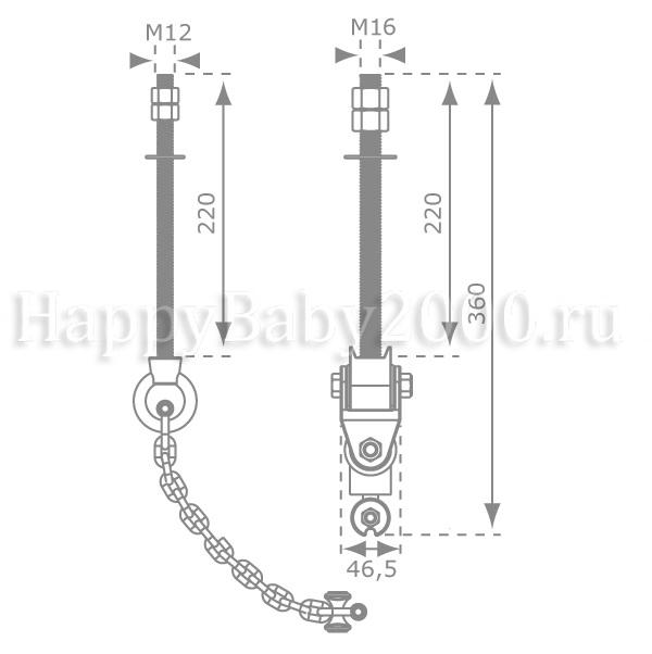 Крепёж для подвесных качелей с резьбовой шпилькой М16x200 мм.