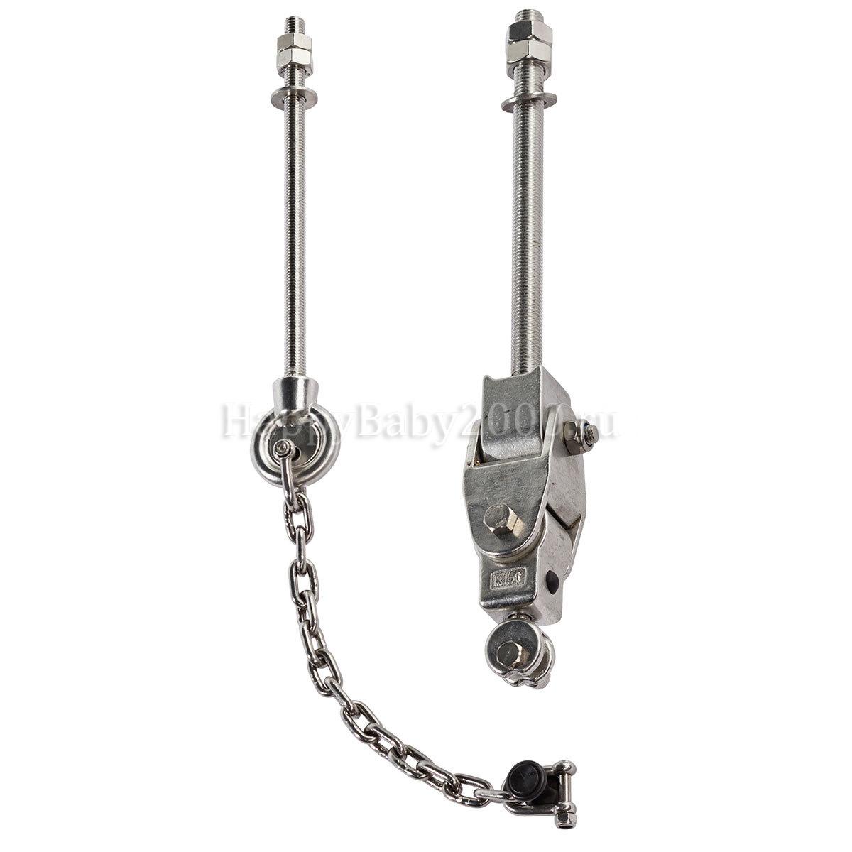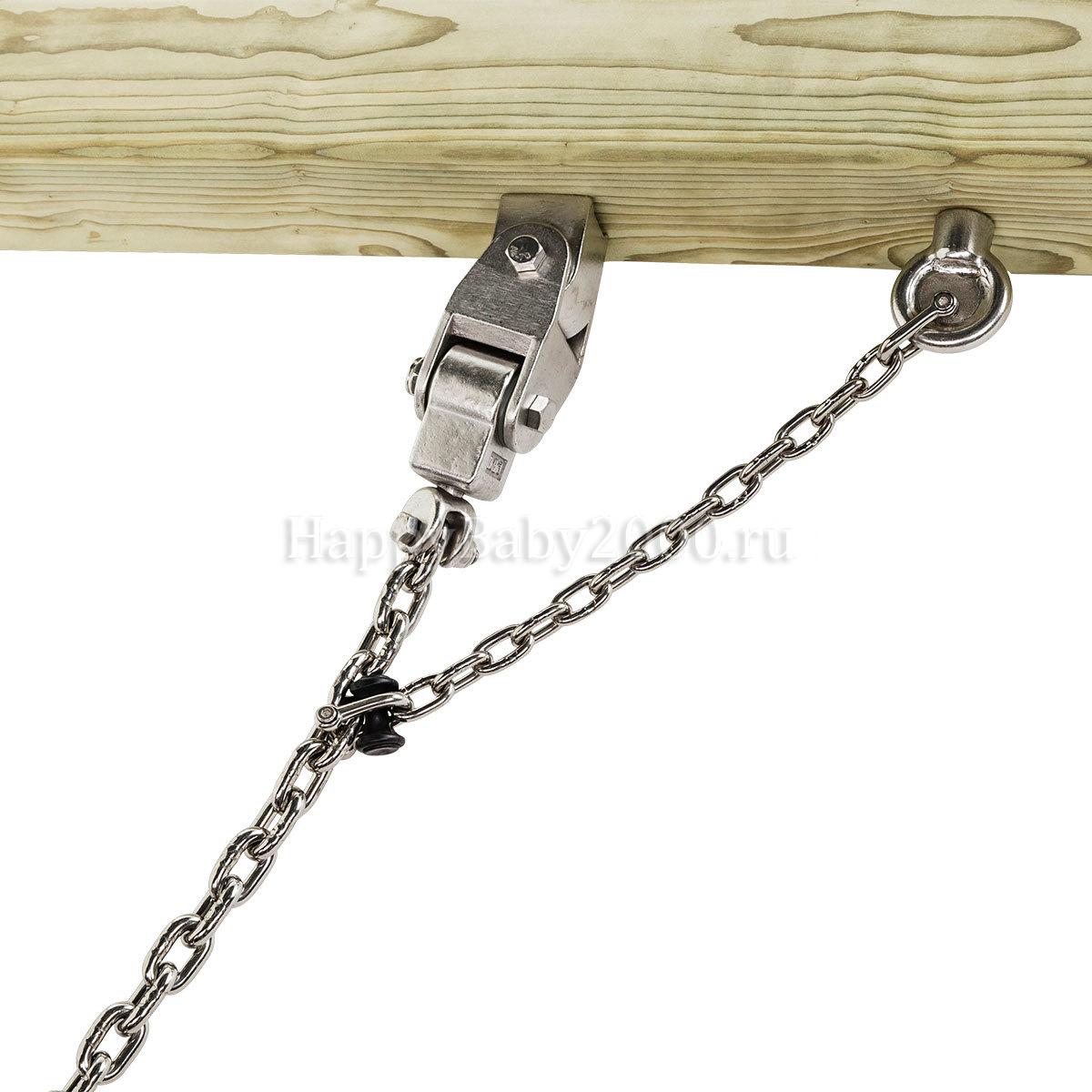 Крепление из нержавеющей стали для подвесных качелей. Может крепиться как к горизонтальным перекладинам, так и к вертикальным опорам. Обеспечивает раскачивание во всех плоскостях. Используется для подвешивания качелей к деревянным или металлическим перекладинам. В подвижной части предусмотрены нейлоновые подшипники, позволяющие уменьшить износ деталей. Изделие обычно применяется с качели-гнездо, качели-паутина. Подвес повышенной прочности сквозной шарнирный, нерж.сталь, длина болта 220 мм. отвечает всем требованиям Европейского стандарта безопасности.