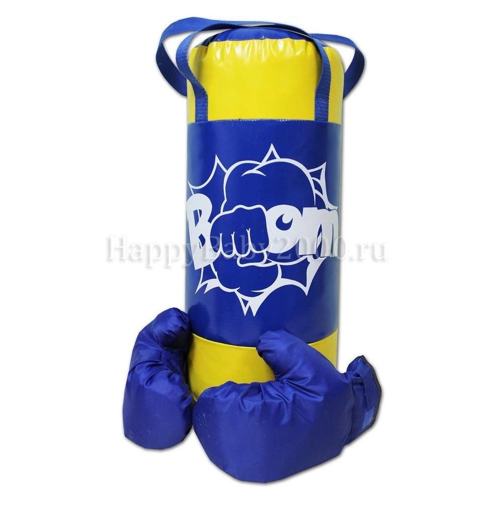 Детский боксерский мешок высотой 60см и диаметром 25 см (вес 3 кг.) с перчатками отличается от остальных мешков тем, что он плотно набит синтепоном и измельченными обрезками ткани. Перчатки внутри проложены пенофолом. Подвесы на стропе и «липучке».