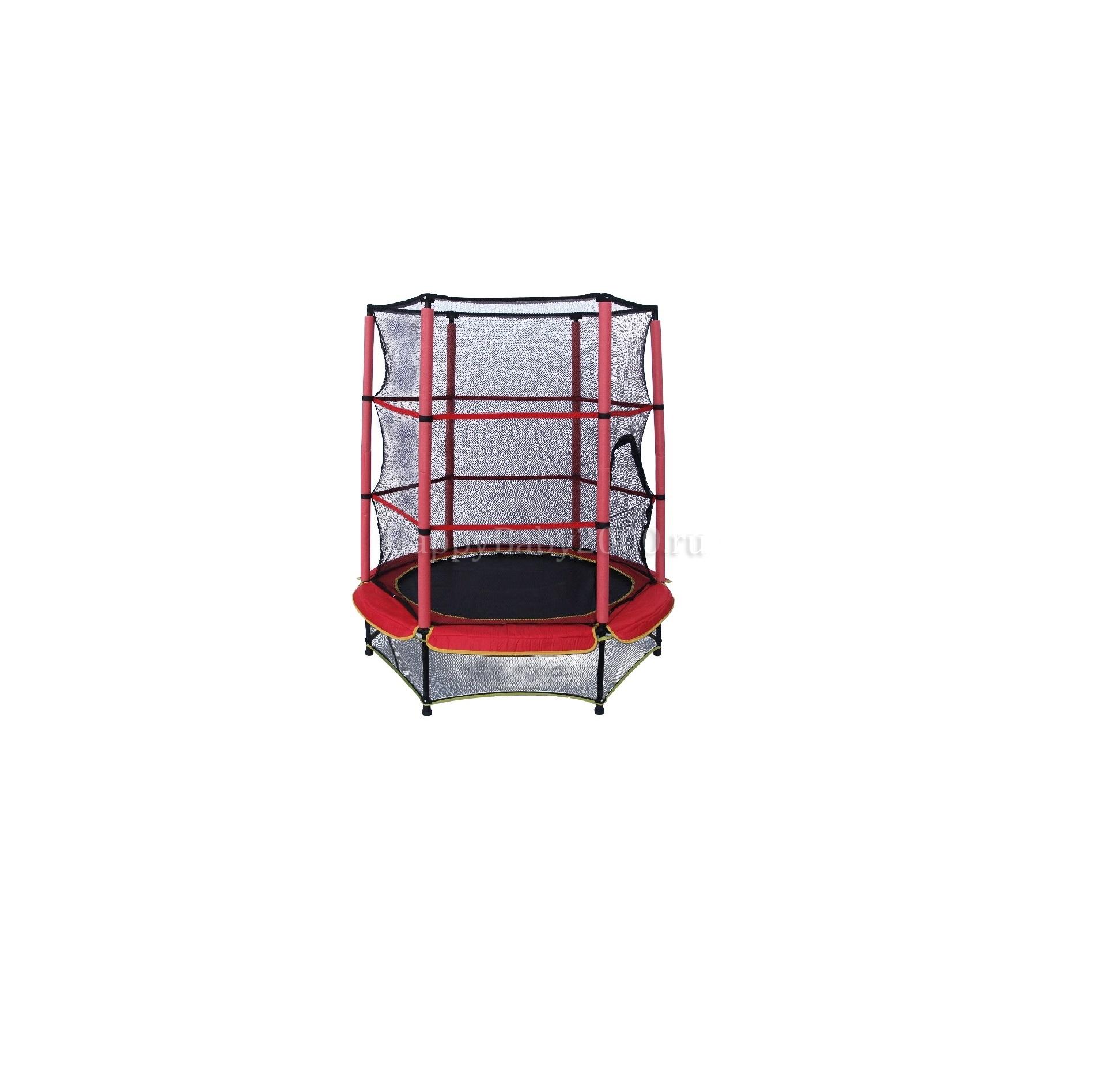 - Комплектация: батут, стойки для защитной сети, защитная сеть (сверху и снизу).