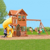 - Детские площадки из дерева – это престижно, красиво и долговечно. Качественные деревянные игровые городки комплектуются красочными пластиковыми скатами и сидениями, яркими веревками, канатами, сетками и т.д.. Если у Вас дорогой коттедж, то детский городок из дерева - правильный выбор. Некоторые думают, что деревянные площадки недолговечны – это заблуждение. Дерево пропитано и обработано специальными составами, которые предотвращают гниение, поэтому городок из дерева прослужит не один десяток лет (главное не устанавливать его в низинах, где постоянно сыро). А обновить покрытие на дереве с помощью пропитки (использование лака и краски - НЕ рекомендуется) под силу даже непрофессионалу. После этого деревянная площадка будет выглядеть как новая. А вот перекраска металлических площадок представляет определенную трудность.