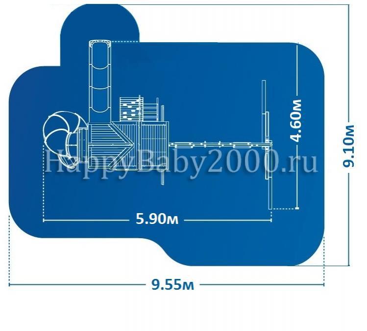 - спиральная горка - труба (желтая или зеленая) с высоты 1.45 м.. Внутренний диаметр трубы: 60см. Возможна замена на трубу внутренним диаметром 660 или 760мм (в соответствии с ГОСТ).