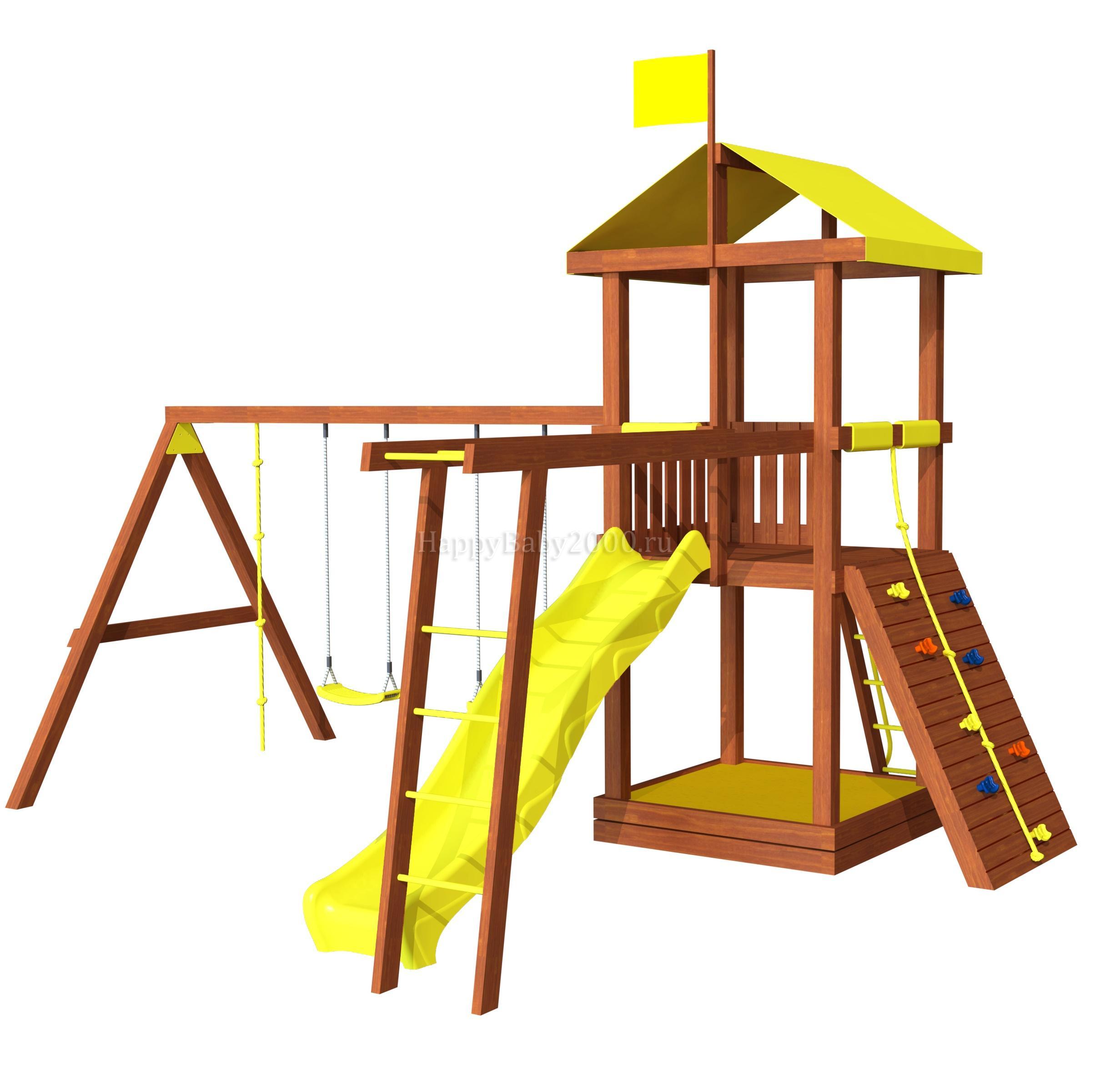 Взаимоположение деталей (горка, лестница, балка качели, альпинистская стена, дополнительные балки) - по желанию покупателя (уточняйте при заказе).