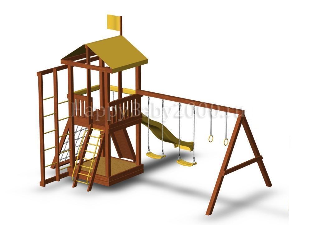 Взаимоположение деталей (горка, лестница, балка качели, альпинистская стена, шведская стенка, сетка в раме) - по желанию покупателя (уточняйте при заказе).