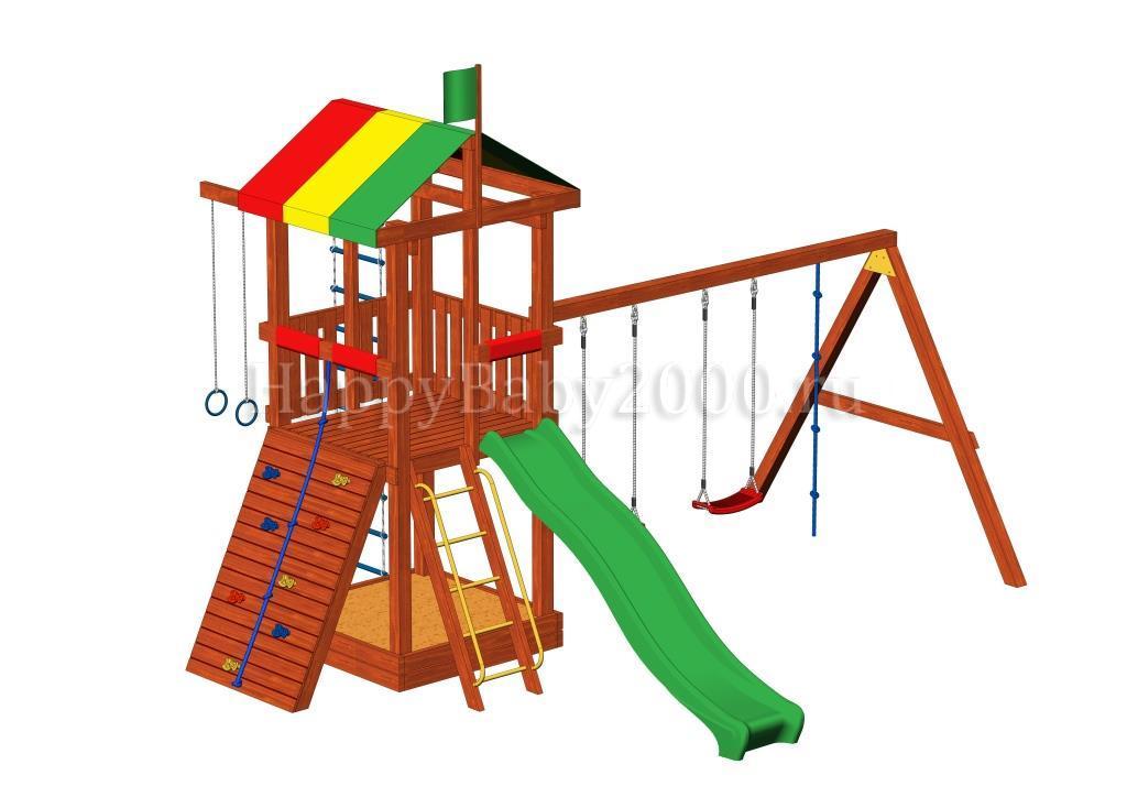 Взаимоположение деталей (горка, лестница, балка качели, альпинистская стена, дополнительные балки) - по желанию покупателя (уточняйте при заказе).