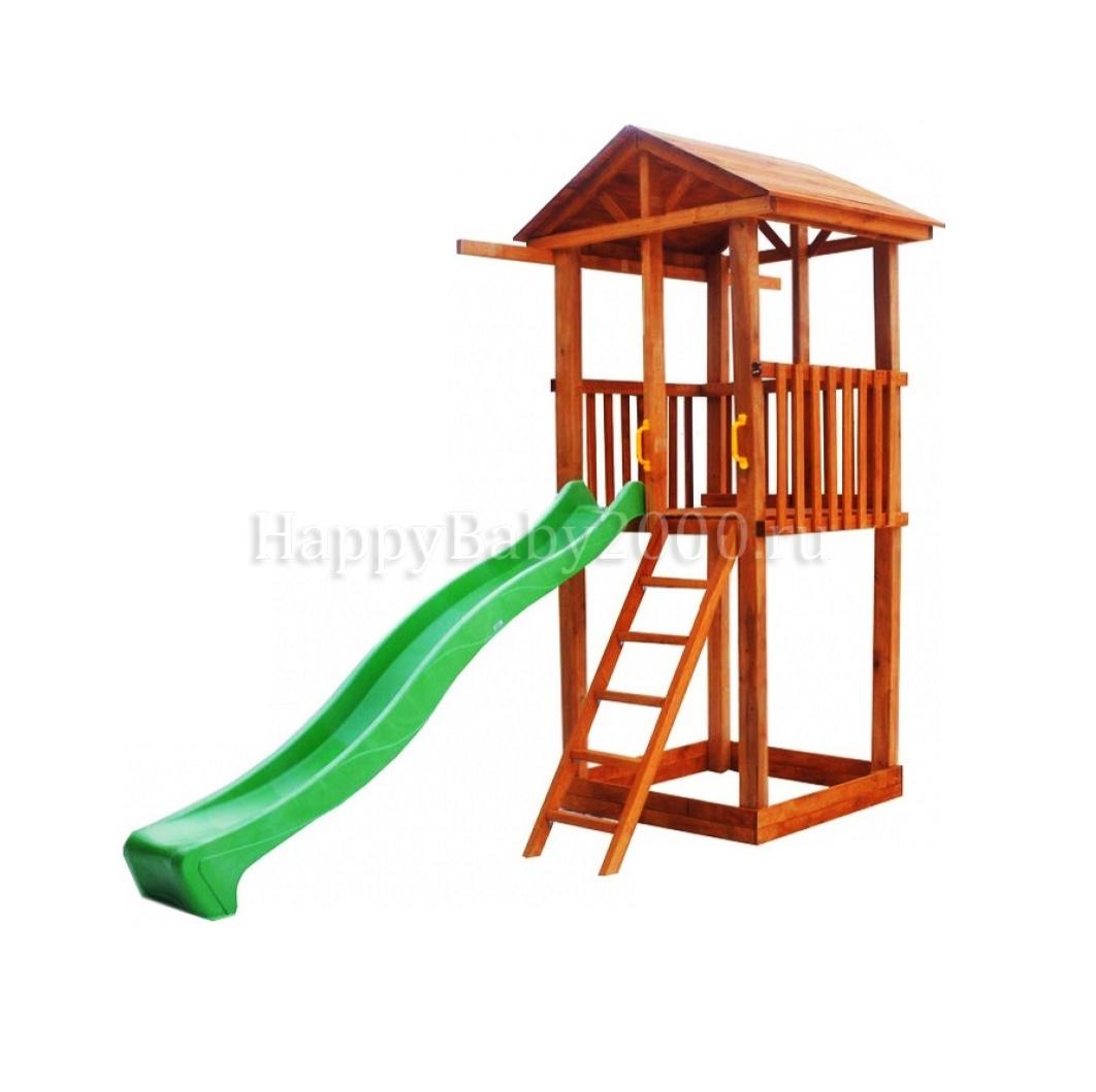 Детский игровой комплекс М1 с деревянной крышей предназначен для дач, коттеджей.