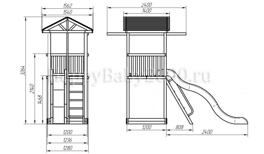 Взаимоположение деталей (горка, лестница) - горка рядом с лестницей. Другие варианты - на заказ.