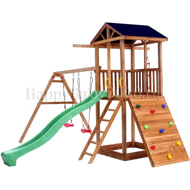 Детский игровой комплекс М9 с качелями, широким скалодромом и тентовой крышей предназначен для дач, коттеджей.