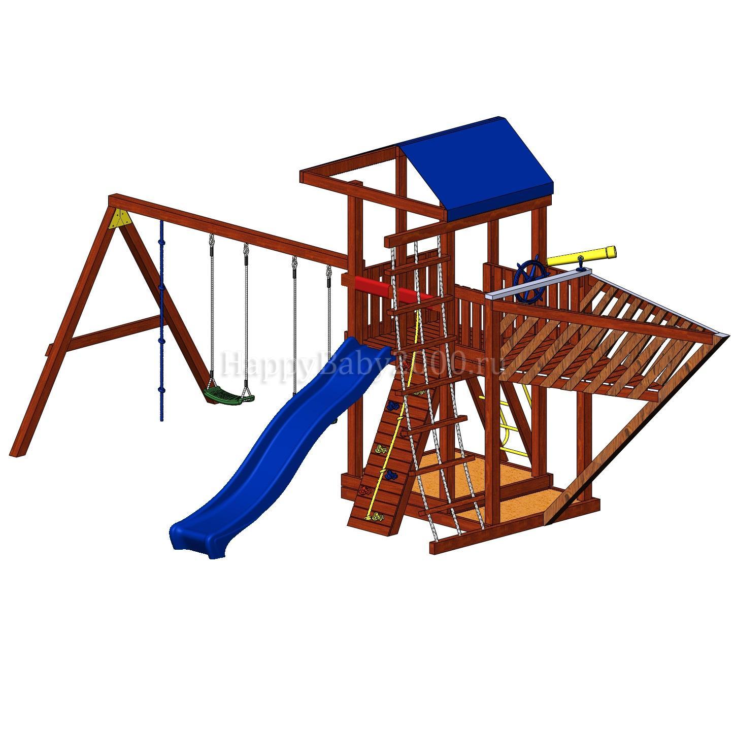 Игровой комплекс "Яхта" имеет капитанский мостик возвышающийся над основной платформой и широкую веревочную лестницу - Ванты. Нос сделан с наклоном - как у настоящего корабля! Если Вы хотите купить площадку с парусами - обратите внимание на площадку Корабль.