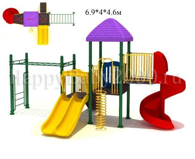 - Пластиковые детали (горки, крыши, стенки и т.д.) изготовлены из качественного импортного пластика (ПНД - пищевой полиэтилен низкого давления антивандальный, атмосферостойкий) с применением УФ-фильтров и современных красителей (срок эксплуатации - 20 лет).