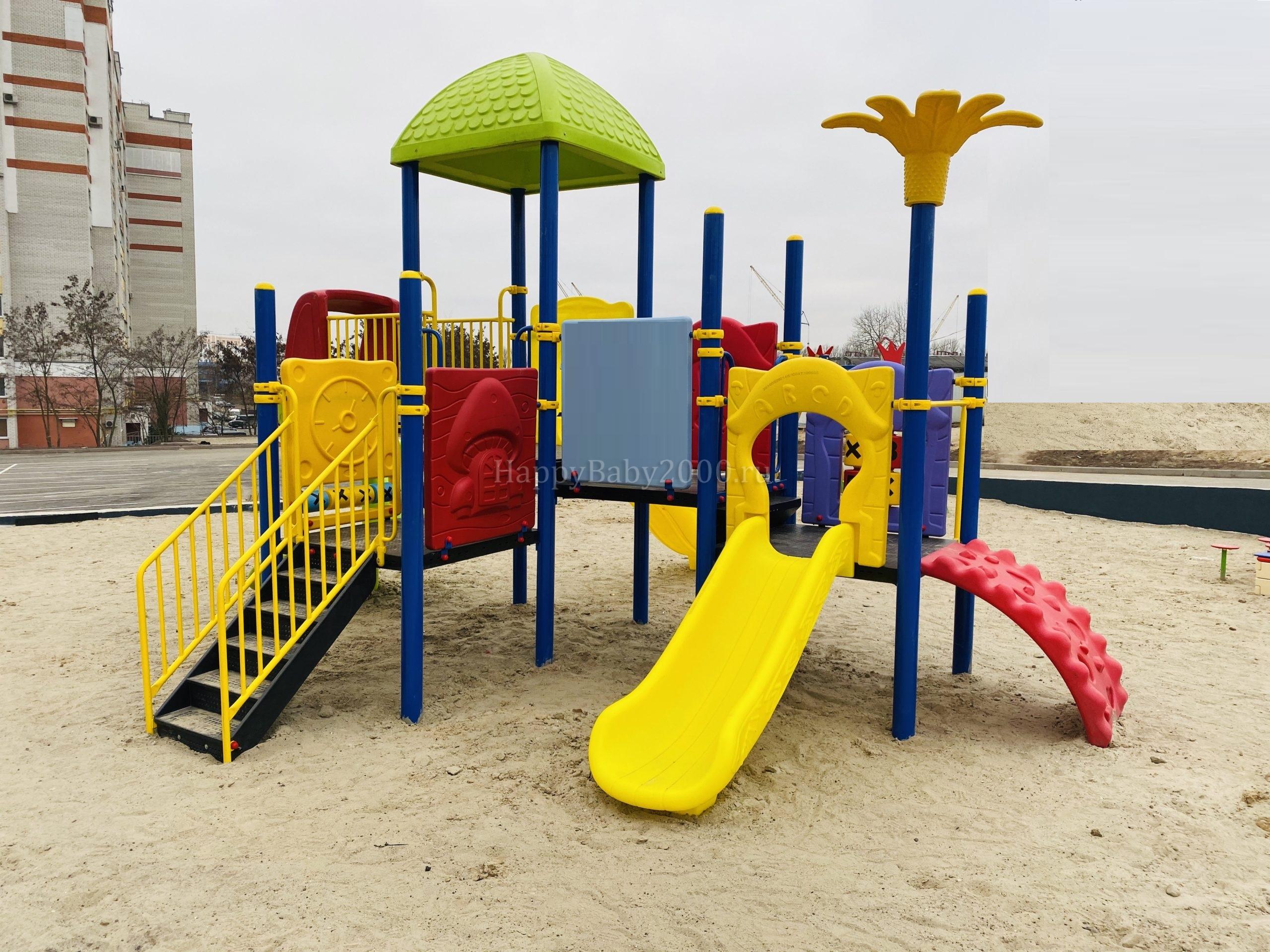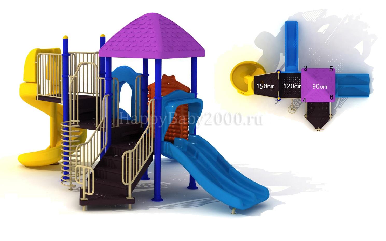 - Пластиковые детали (горки, крыши, стенки и т.д.) изготовлены из качественного импортного пластика (ПНД - пищевой полиэтилен низкого давления антивандальный, атмосферостойкий) с применением УФ-фильтров и современных красителей (срок эксплуатации - 20 лет).