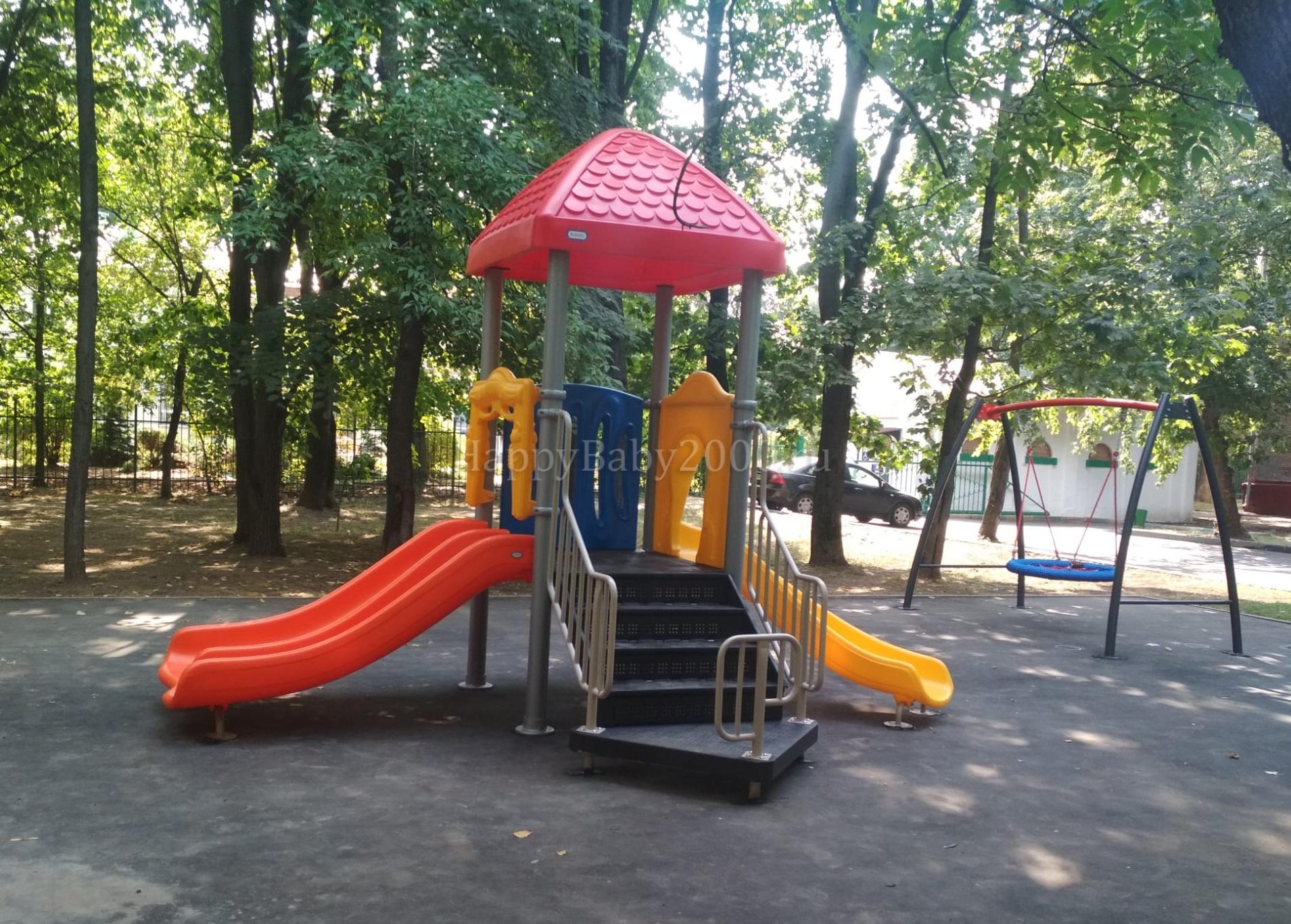 - Пластиковые детали (горки, крыши, стенки и т.д.) изготовлены из качественного импортного пластика (ПНД - пищевой полиэтилен низкого давления антивандальный, атмосферостойкий) с применением УФ-фильтров и современных красителей (срок эксплуатации - 20 лет).