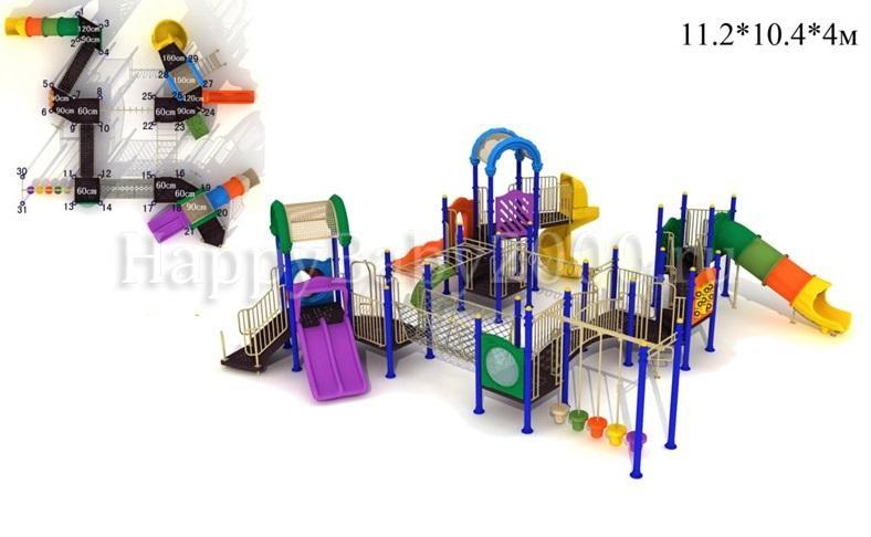 - Пластиковые детали (горки, крыши, стенки и т.д.) изготовлены из качественного импортного пластика (ПНД - пищевой полиэтилен низкого давления антивандальный, атмосферостойкий) с применением УФ-фильтров и современных красителей (срок эксплуатации - 20 лет).