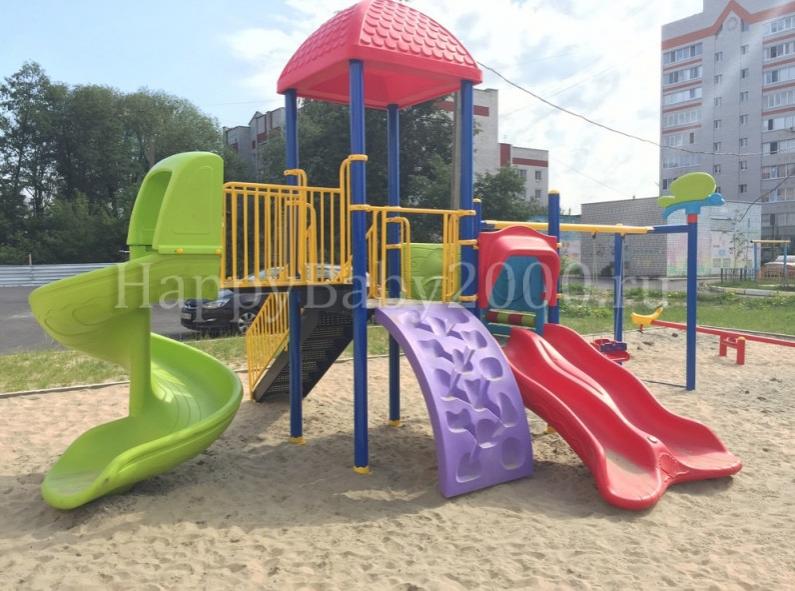 - Пластиковые детали (горки, крыши, стенки и т.д.) изготовлены из качественного импортного пластика (ПНД - пищевой полиэтилен низкого давления антивандальный, атмосферостойкий) с применением УФ-фильтров и современных красителей (срок эксплуатации - 20 лет).