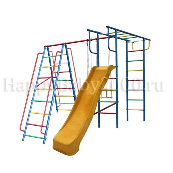 Комплектация: качели, кольца, канат, 3-х метровая горка.