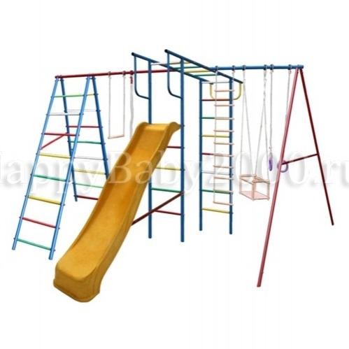 Комплектация: трапеция, качели, веревочная лестница, кольца, канат, 3-х метровая горка.