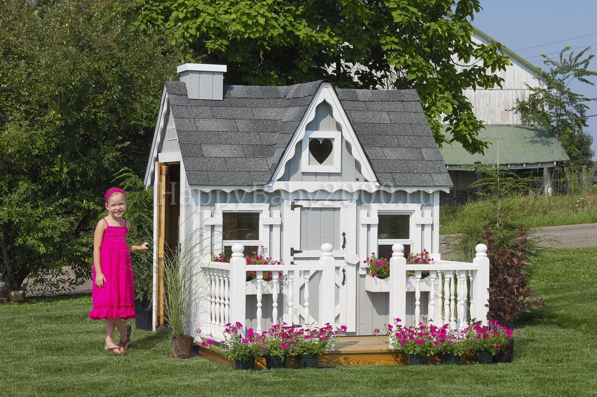 В комплекте: пол, два окошка, небьющиеся стекла, декоративные ставни, цветочные горшки, двойная центральная дверь (разбивка на верх и низ), боковая дверь (возможна бесплатная замена на третье окошко).