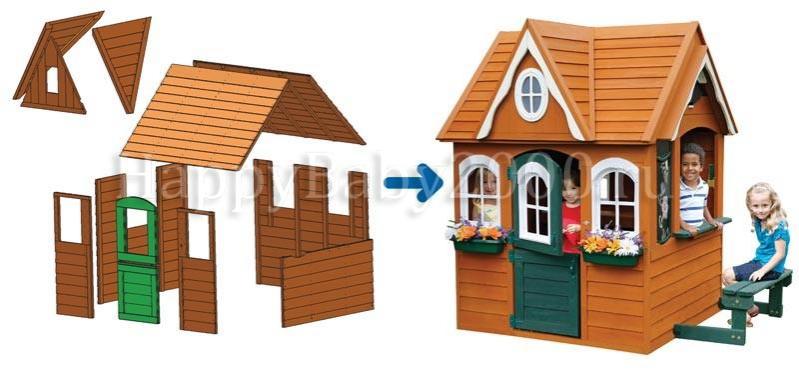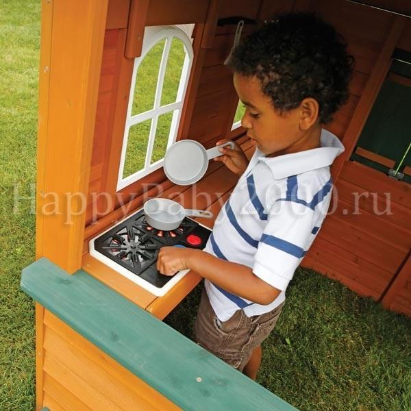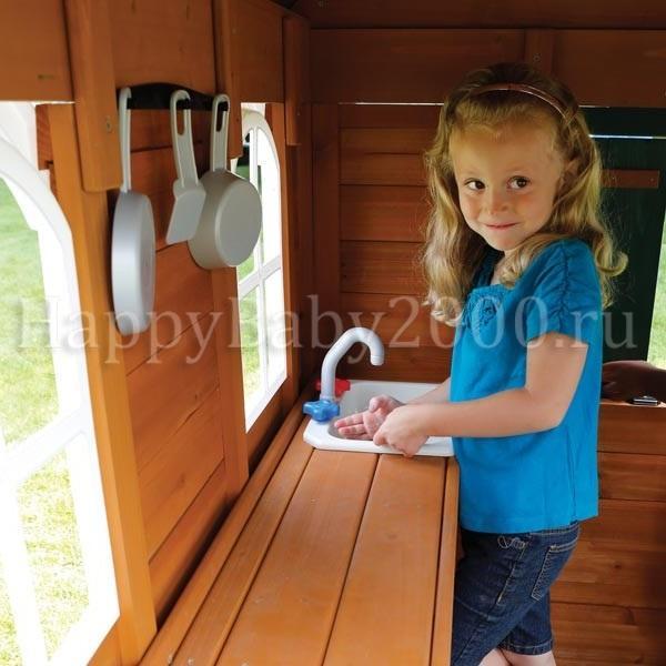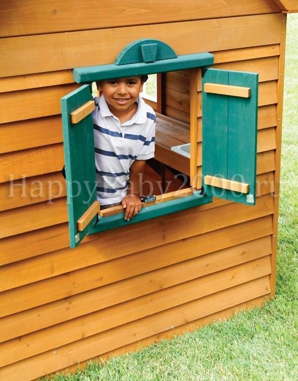 Домик изготовлен из породы Cunninghamia Lanceolata (китайский кедр). Окошки, плита, раковина, посуда - изготовлены из пластика.